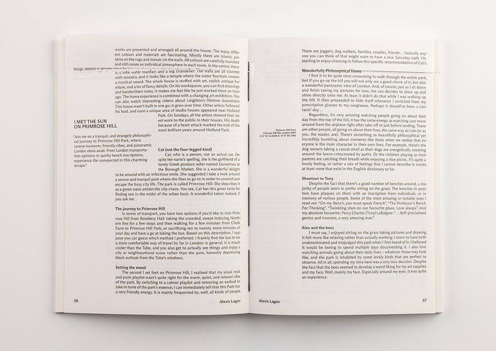 alone in London. I used wandering as a theme for the design of my book. My 21 classmates and I took the