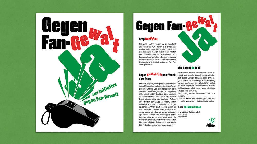 Lien, I designed this campaign for the initiative against fan violence for the ‘die Mitte Luzern’ political