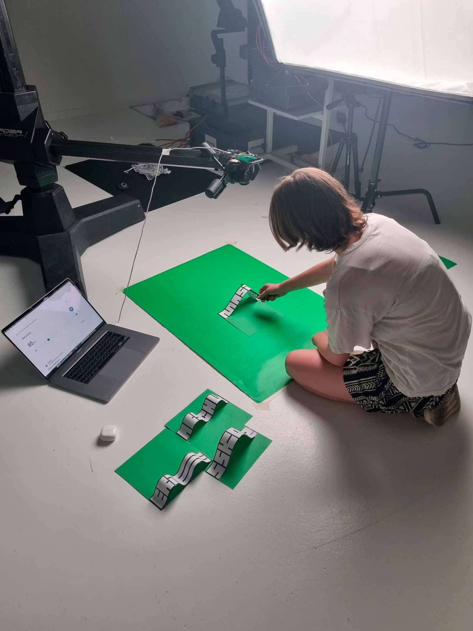 analog mit bedrucktem Papier gearbeitet, das ich für die Animation mit Stiften hin und her bewegt habe.