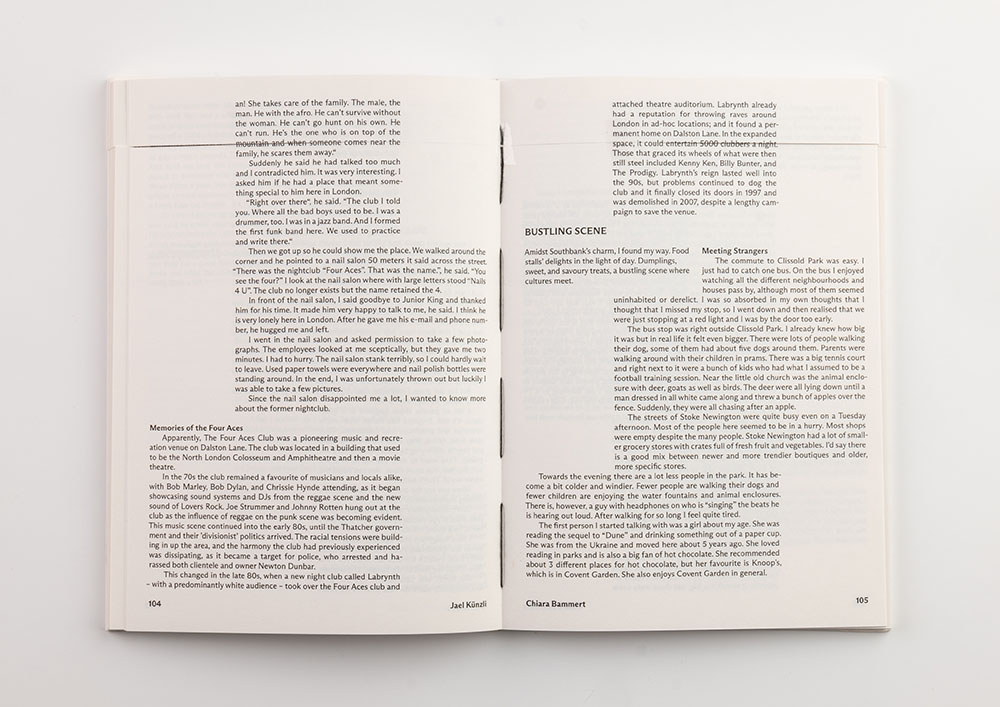 alone in London. I used wandering as a theme for the design of my book. My 21 classmates and I took the
