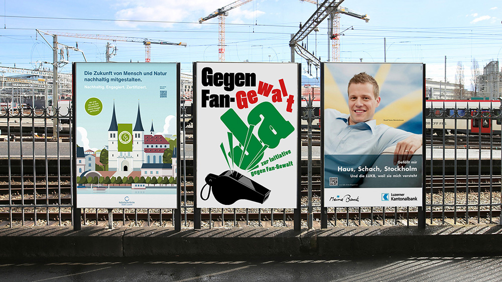 diese Kampagne zur Initiative gegen Fan-Gewalt für die Partei «die Mitte Luzern» gestaltet. In der